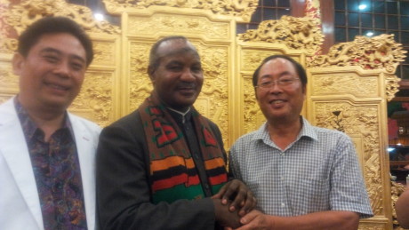 我公司銘澤機械董事長李新生與贊比亞共和國前副總統盧潘多.姆瓦佩、杰出華商協會主席盧俊卿合影