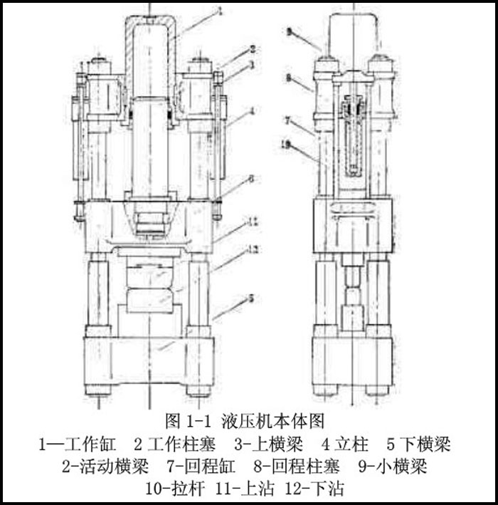 機(jī)架部上下橫梁,立柱組成。上下橫梁全部由整體鑄鋼件制作而成,上下橫梁用四根立柱由內(nèi)外螺母連接,承受工作時的張力。